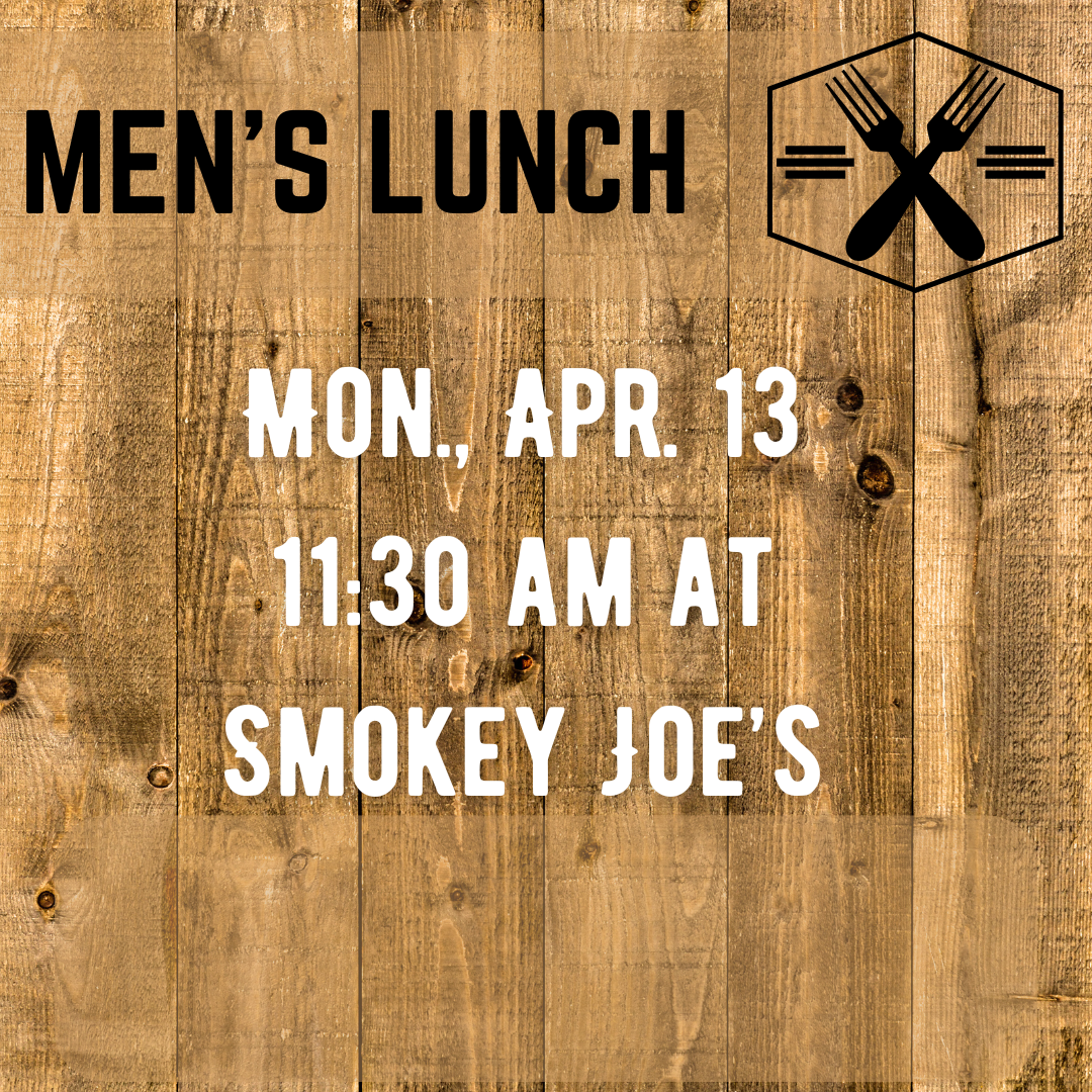 Men’s Lunch- April 13, 11 am at Smokey Joe’s