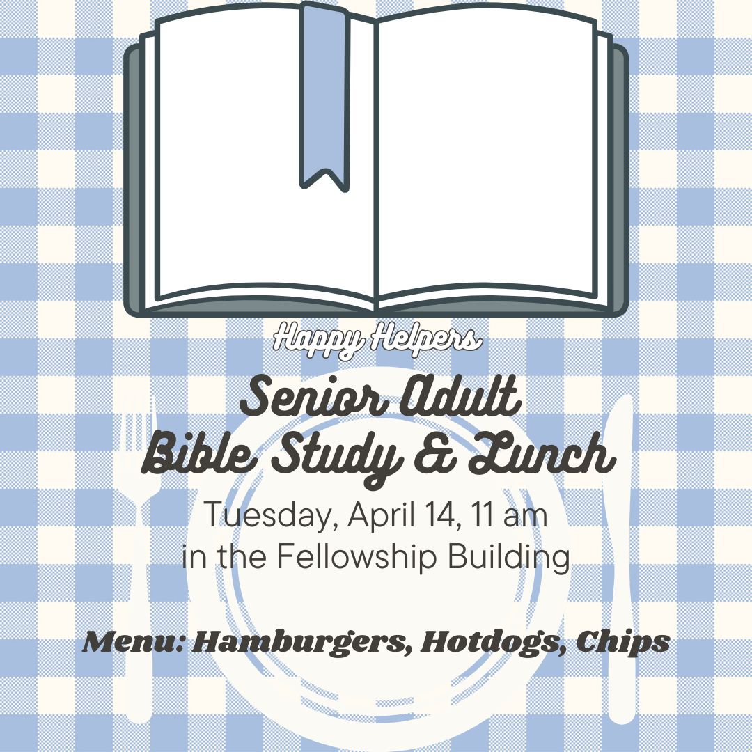 Happy Helpers: Sr. Adult Bible Study & Lunch- Tuesday, April 14 at 11:30 am