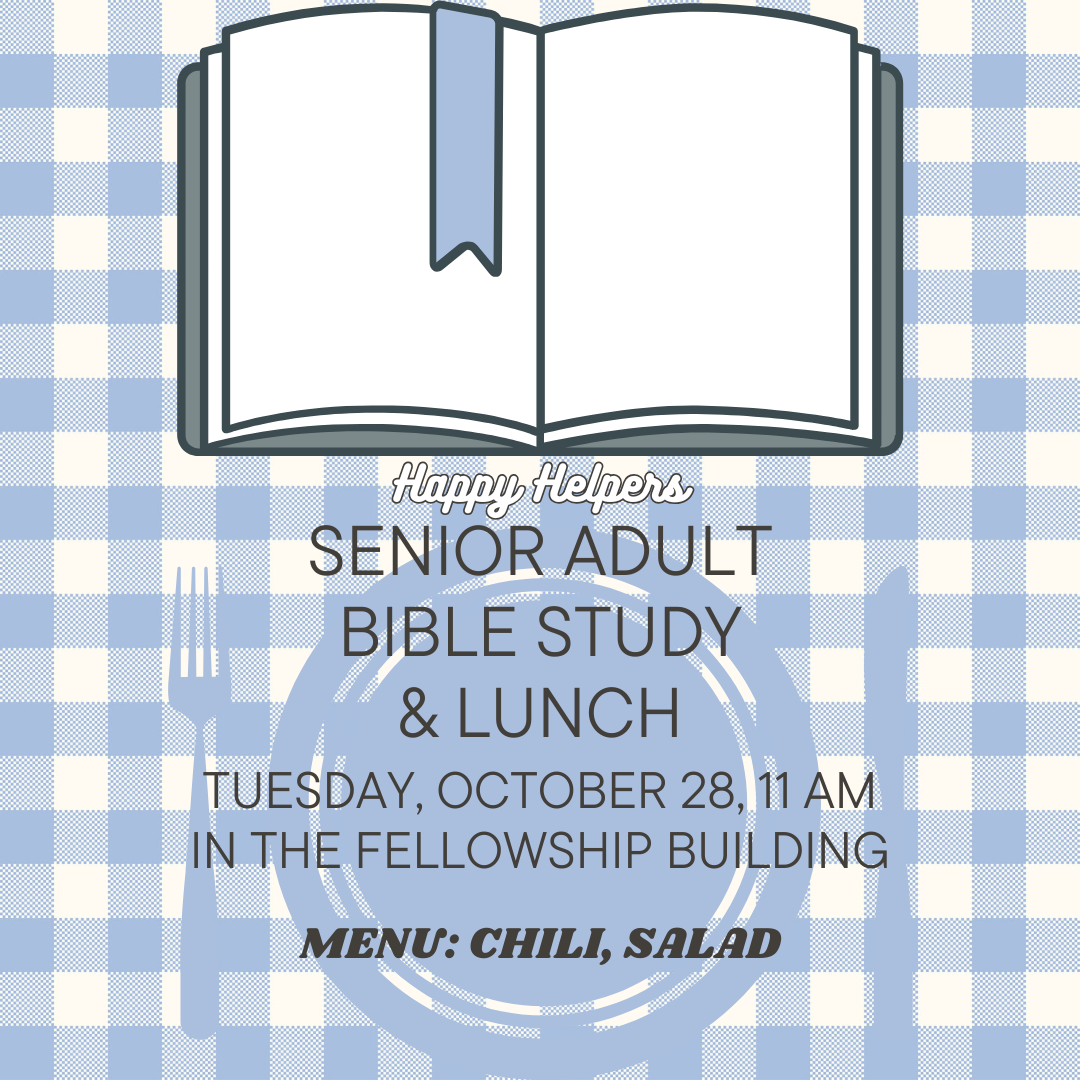 Read moreSr. Adult Bible Study & Lunch: Tues., Oct. 28, 11 am