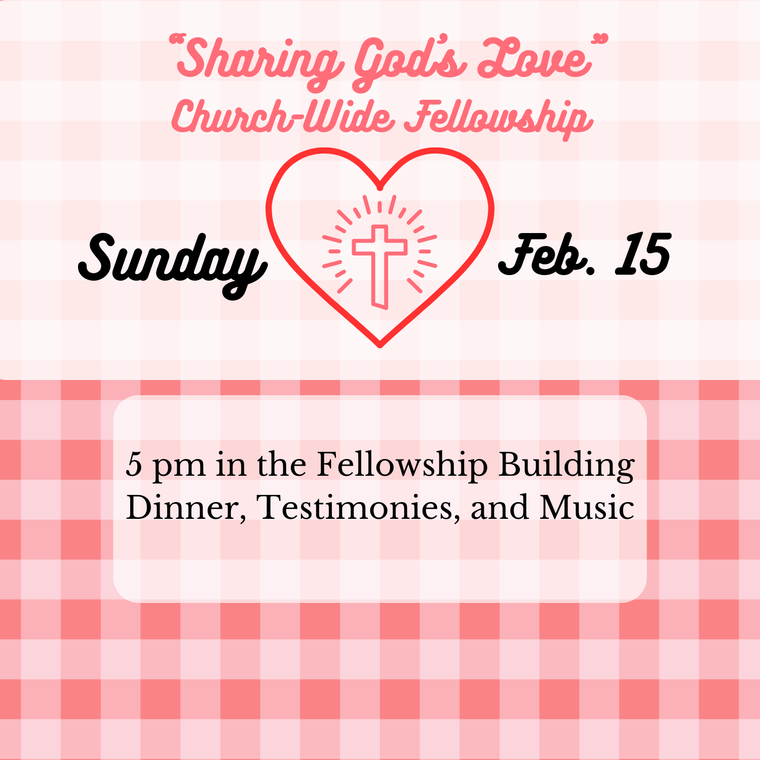 “Sharing God’s Love” Church-wide Fellowship- Sun., Feb. 15- 5 pm